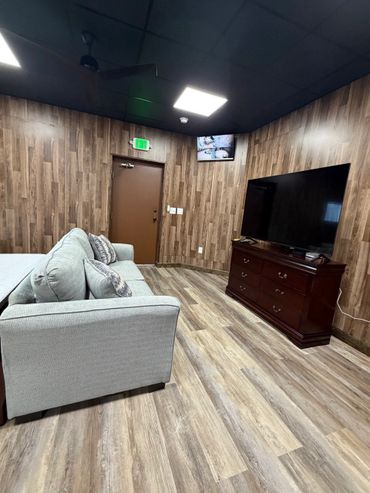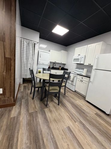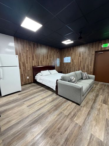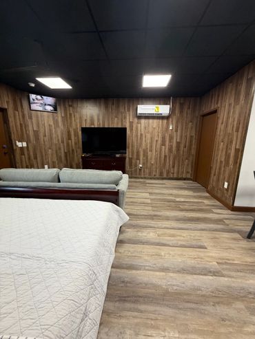 This unit is set up with a King size bed and a queen pull out sofa bed, full bathroom with walk-in shower, towels, shampoo, body wash and conditioner are provided. Full functional kitchen, coffee maker, microwave, blender, etc. stackable washer/dryer onsite (laundry detergent NOT provided) Smart Flat screen TV and security camaras so that you can keep an eye on your vehicle while you are there. High speed internet and Wi-fi This unit also has access to a enclosed garage (Inquire for more info)